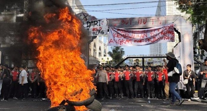 Ratusan massa melakukan aksi demo ini untuk menuntut beberapa poin, di antaranya penghapusan tunjangan mewah DPR.