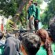Massa demonstran bertindak semakin beringas dengan berusaha memanjat pagar kantor DPRD Sumut dan terlihat sebagian dari mereka melempar botol air mineral hingga batu ke arah aparat yang berjaga.