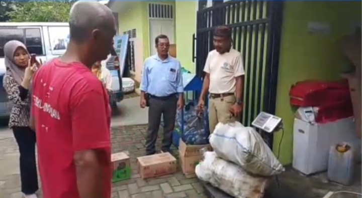 Sebelum penukaran, dilakukan penimbangan jumlah berat sampah plastik yang akan ditukarkan tersebut.
