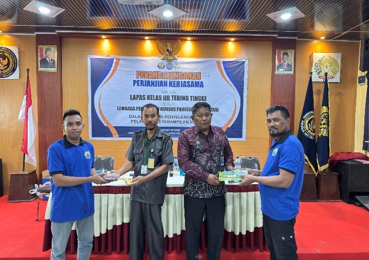 Tebing Tinggi, Relasipublik.com- Sebuah langkah strategis kembali diambil oleh Lembaga Pemasyarakatan (Lapas) Kelas IIB Tebing Tinggi dalam upaya meningkatkan kualitas pembinaan narapidana. Pada hari ini, Jum’at, 15 Agustus 2025 Lapas Kelas IIB Tebing Tinggi secara resmi menjalin kerja sama dengan Lembaga Pendidikan Kursus Profesional (LPKP) Mentari melalui penandatanganan perjanjian kerja sama dalam penyelenggaraan pelatihan keterampilan vokasi bagi warga binaan pemasyarakatan.