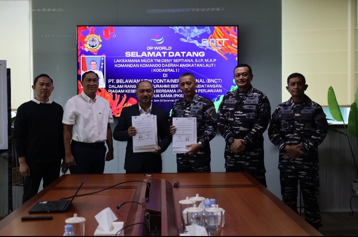 Acara penandatanganan berlangsung di Kantor PT BNCT pada 29 September 2025 dan turut disaksikan oleh Komandan Kodaeral I, Laksamana Muda TNI Deny Septiana, S.IP., M.A.P. Kehadiran unsur TNI AL dalam perjanjian ini mempertegas sinergi antara sektor maritim nasional dengan perusahaan operator terminal peti kemas internasional.