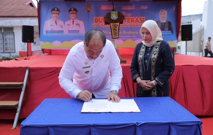 Kemudian secara resmi Bupati Asahan Taufik Zainal Abidin S.Sos, M.Si melantik Yusnila Indriati Taufik sebagai Bunda Literasi Kabupaten Asahan Tahun 2025.