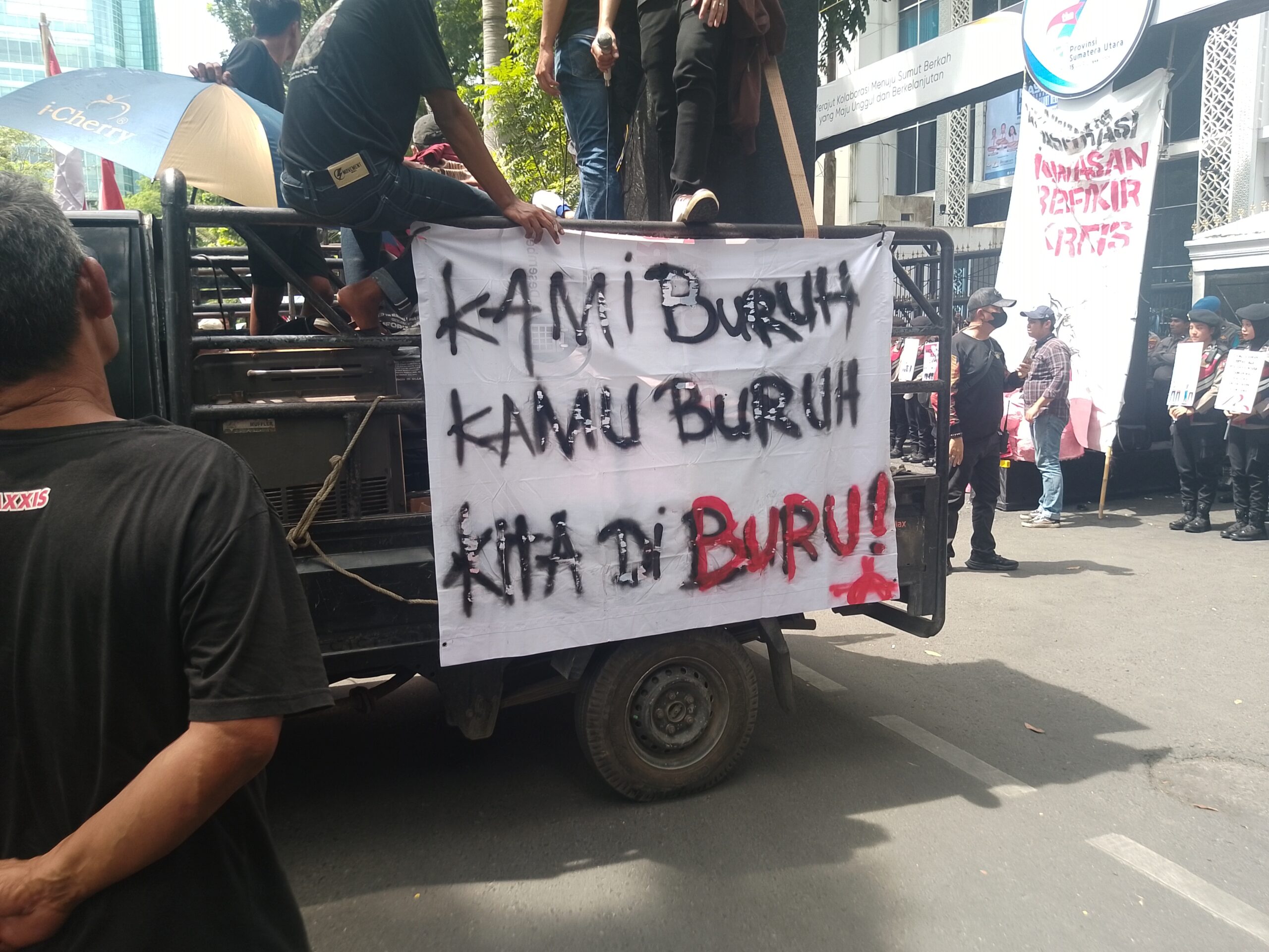 -Hentikan bentuk kriminalisasi terhadap gerakan buruh