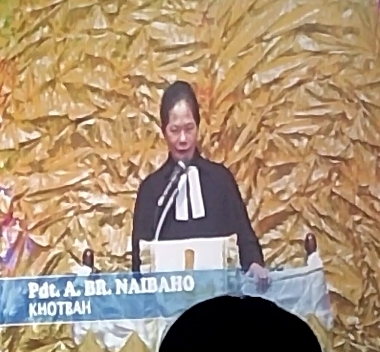 Dalam Khotbahnya Pdt. Alprida br Naibaho mengatakan bahwa Natal kali ini diibaratkan sedang naik pesawat terbang sedangkan bepergian dengan sebuah tujuan kehidupan, penerbangan ini  di Piloti Malaikat dan Co-pilot adalah hamba hamba Tuhan.