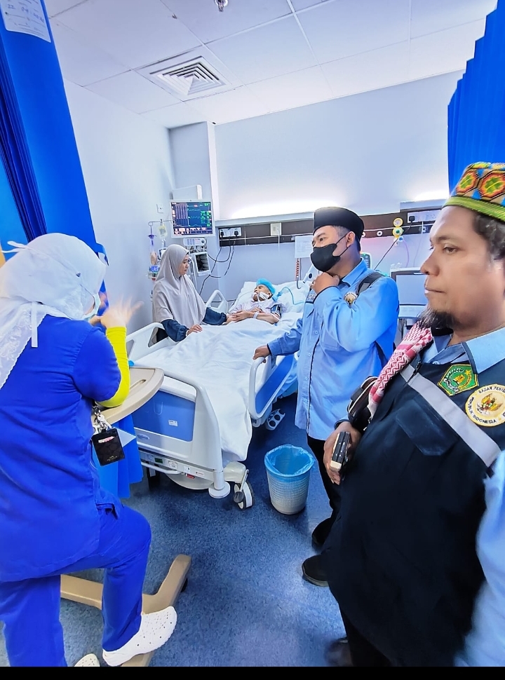 Petugas Kloter 9 KNO Jenguk Jemaah yang Sakit.(Dok.Humas)