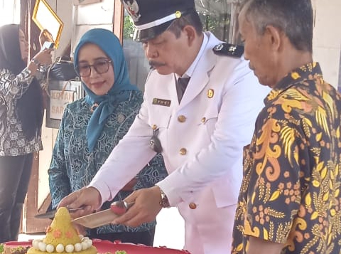 Pemotongan nasi tumpeng tersebut dilakukan setelah pelaksanaan upacara dan pidato peringatan Hari Desa Nasional, serta disaksikan oleh warga dan perangkat desa.