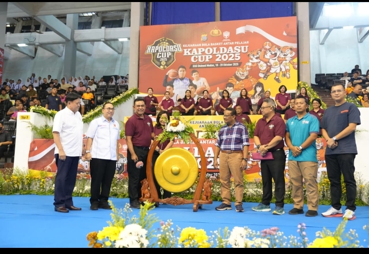Medan, Relasipublik.com– Suasana Gedung Serba Guna Universitas Negeri Medan (UNIMED) tampak meriah pada Sabtu (18/10), saat Kapolda Sumatera Utara Irjen Pol. Whisnu Hermawan Februanto secara resmi membuka Kejuaraan Bola Basket Antar Pelajar “Kapoldasu Cup 2025”.