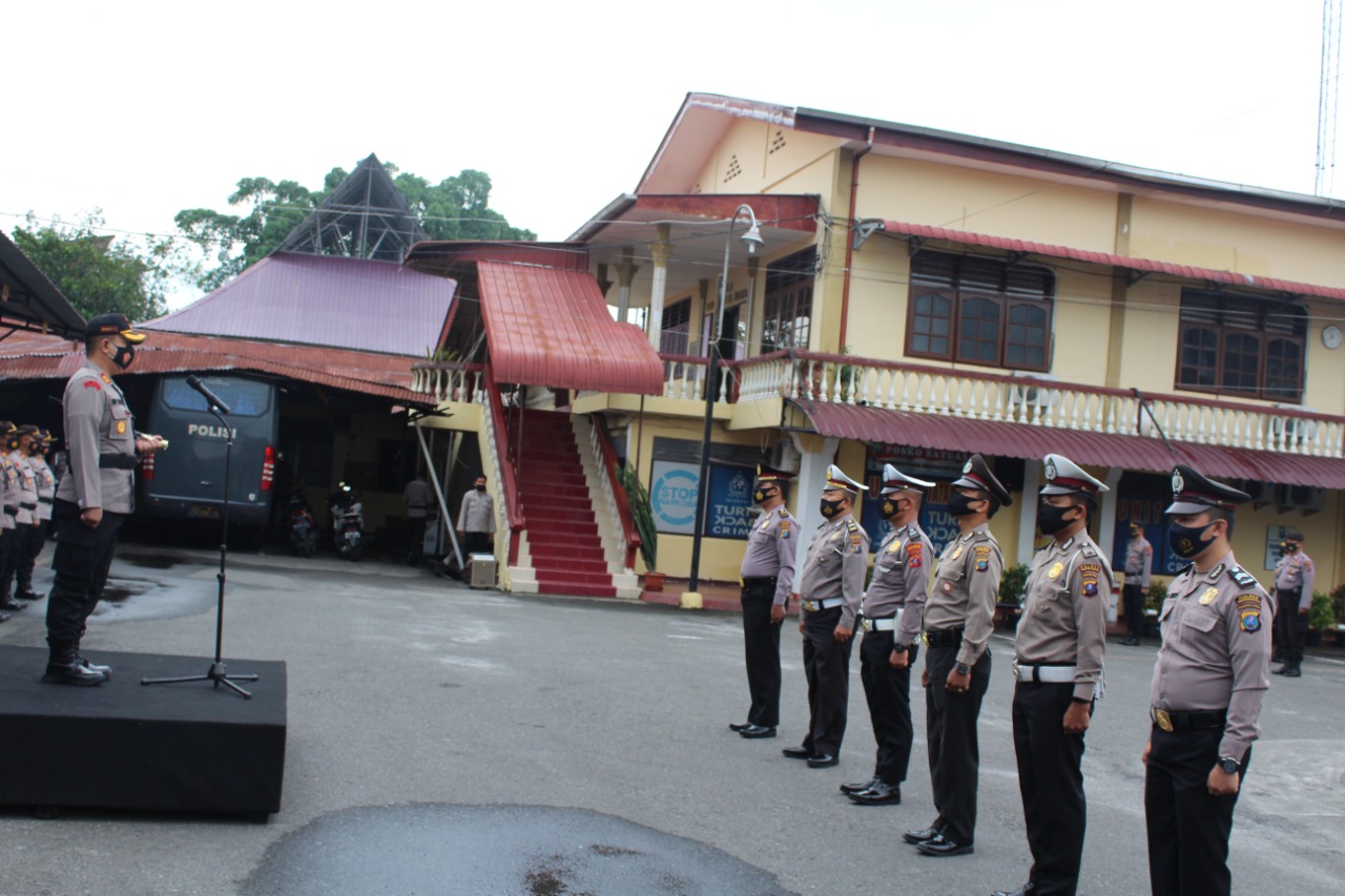 “Kepada seluruh personil, agar menjauhi dan meninggalkan kegiatan yang bertentangan dengan pelanggaran disiplin terlebih lebih yang tersangkut dengan tindak pidana agar karir kepangkatan kita dalam kepolisian republik indonesia tidak terhalang, pupuk rasa kebanggaan diri untuk menjadi pelayan masyarakat”Ujarnya .