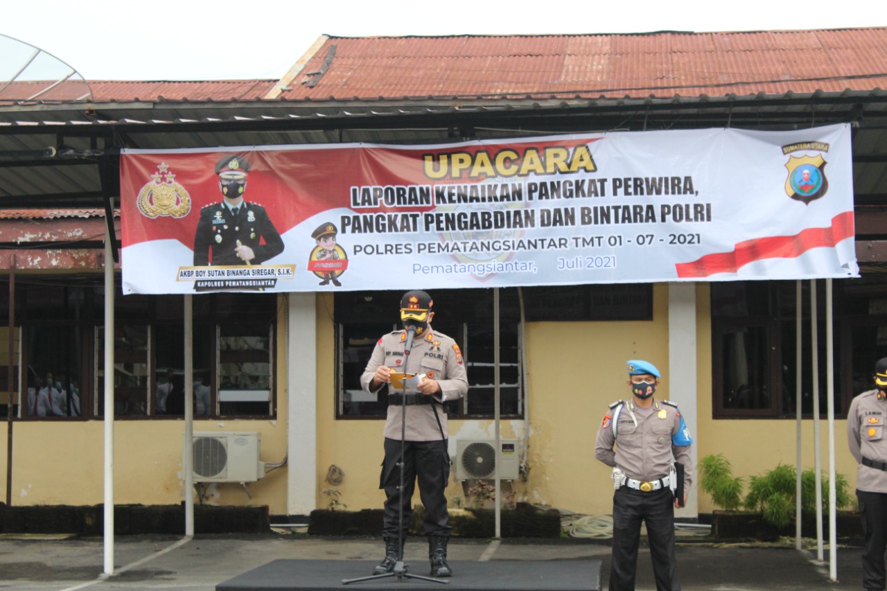 Pada kesempatan tersebut Kapolres Pematangsiantar menyampaikan apresiasi setinggi-tingginya kepada seluruh personil Polres Pematangsiantar yang naik pangkat hari ini, karena atas dedikasinya, loyalitasnya, dan prestasi kerja yang telah dilaksanakan dengan penuh rasa tanggung jawab dan secara terus menerus tidak terputus-putus di lingkungan Polri .