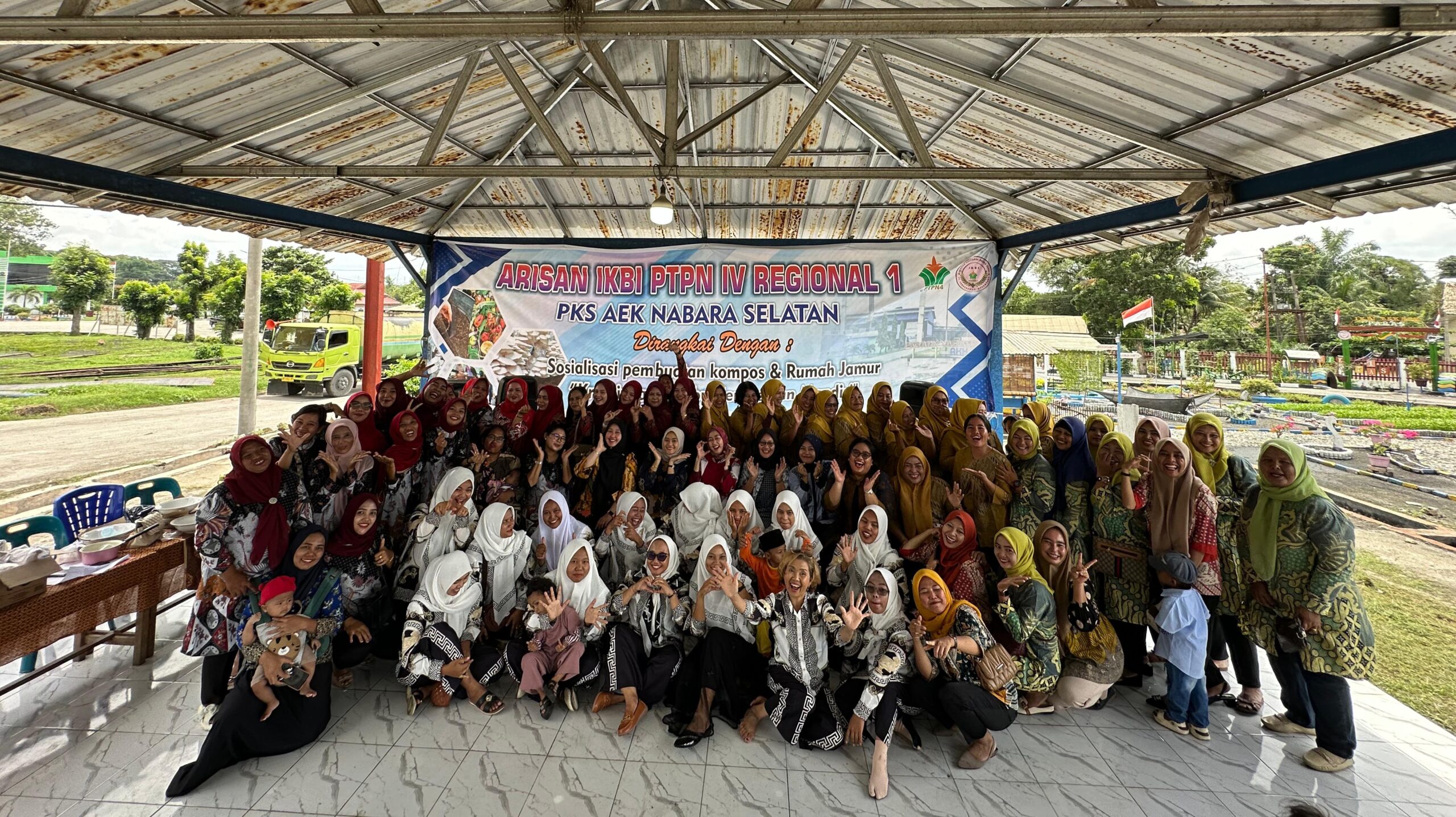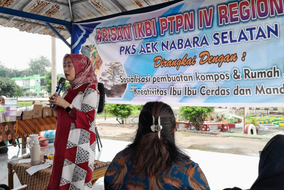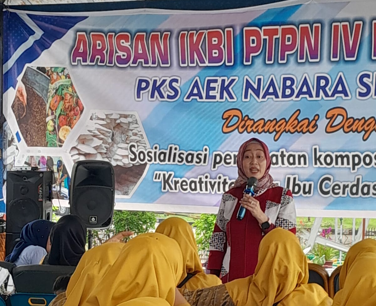 LABUHANBATU – Ikatan Keluarga Besar Istri (IKBI) PTPN IV Regional 1 PKS Aek Nabara Selatan menggelar kegiatan arisan yang dirangkai dengan sosialisasi pembuatan kompos dan rumah jamur.