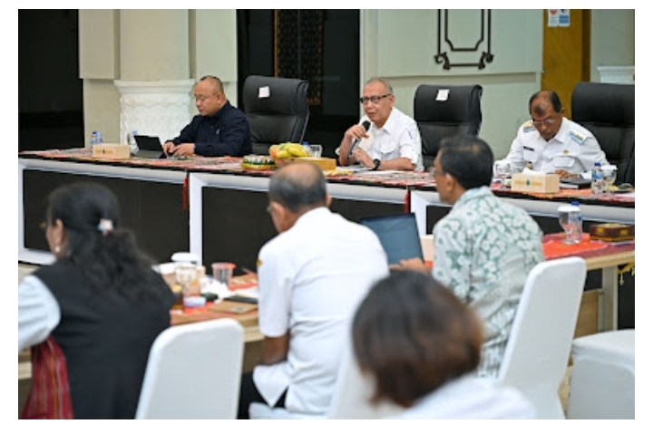 Asisten Perekonomian dan Pembangunan Pemprov Sumut, Effendy Pohan memimpin Rapat Lanjutan Persiapan Event F1 Powerboat dan Aquabike World Championship  2025 di Aula Raja Inal Siregar, lantai 2 Kantor Gubernur Sumut, Jalan Diponegoro No. 30, Medan, Rabu (13/8/2025). (Foto : Dinas Komunikasi dan Informatika Provinsi Sumut / Imam Syahputra).