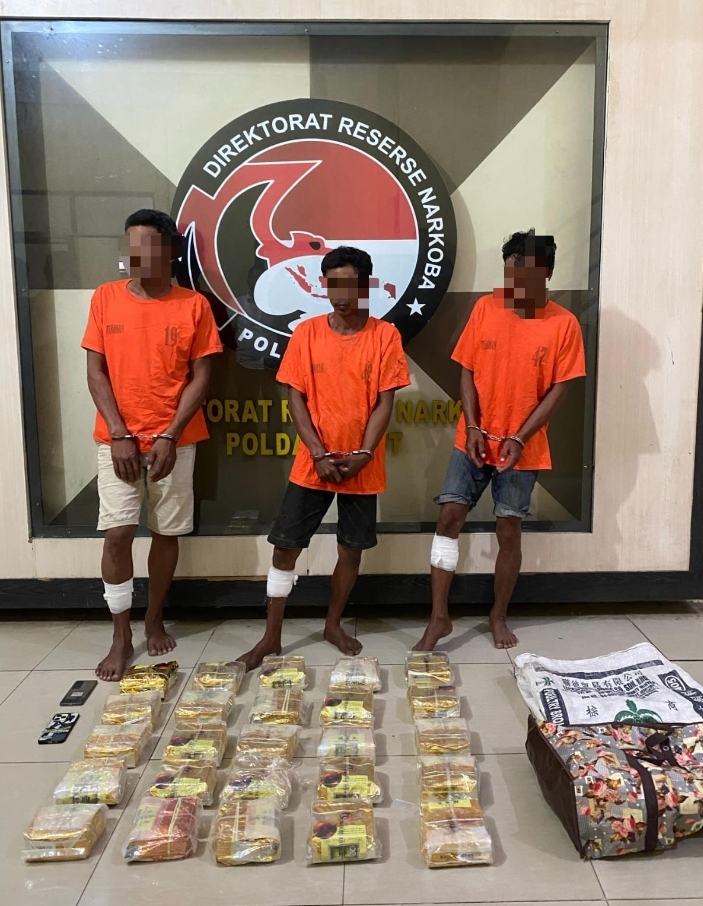 “Tim langsung melakukan penyelidikan dan mendapati tiga pelaku sesuai dengan ciri-ciri yang dilaporkan. Setelah dilakukan penggeledahan, ditemukan satu karung berisi 25 bungkus teh China berwarna kuning merk Guan Yin Wang yang diduga berisi sabu dengan berat total sekitar 25.000 gram,” ujarnya.