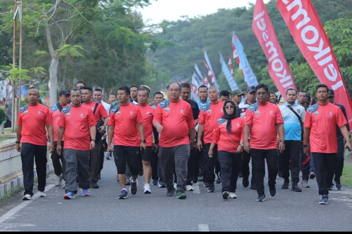 Keterangan foto : Bupati Asahan Taufik Zainal Abidin bersama Dandim 0208 Asahan Letkol Edy Syahputra dan Forkopimda ikut jalan santai HUT TNI ke 80.(dok/ist)