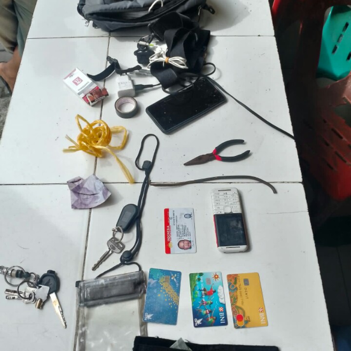 Dari tangan pelaku berhasil diamankan barang bukti berupa besi runcing, tang pemotong, isosali hitam dan dua unit handphone .
