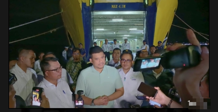 Seremonial pelayaran perdana Kapal Motor Penumpang (KMP) Jatra II milik PT. ASDP oleh Gubsu. , Bobby Nasution. (Dok. Ist.)