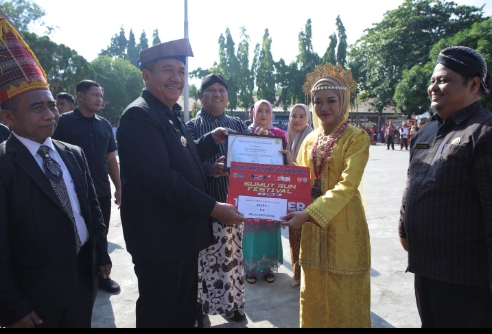 Bupati dan wakil bupati juga menyerahkan souvenir dan buku rekening Program Indonesia Pintar (PIP) kepada 75 siswa, dan menyerahkan piagam penghargaan kepada peserta pelajar putri juara 1 Run 5K Sumut Run Festival 2025.(is)