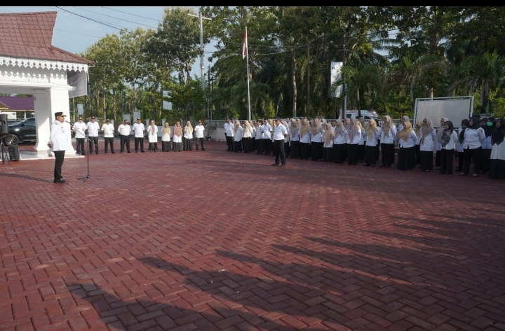 Asahan, RELASI PUBLIK – Wakil Bupati Asahan Rianto SH, MAP memimpin apel pagi di halaman kantor dinas kesehatan, Rabu (30/07/2025).