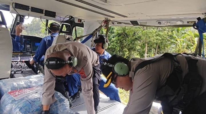 Kombes Pol Yudhi Surya Markus Pinem, S.I.K., M.H., yang memimpin distribusi bantuan tersebut menyampaikan bahwa pengiriman melalui udara menjadi opsi yang paling memungkinkan mengingat kondisi lapangan saat ini masih belum dapat dilalui kendaraan.