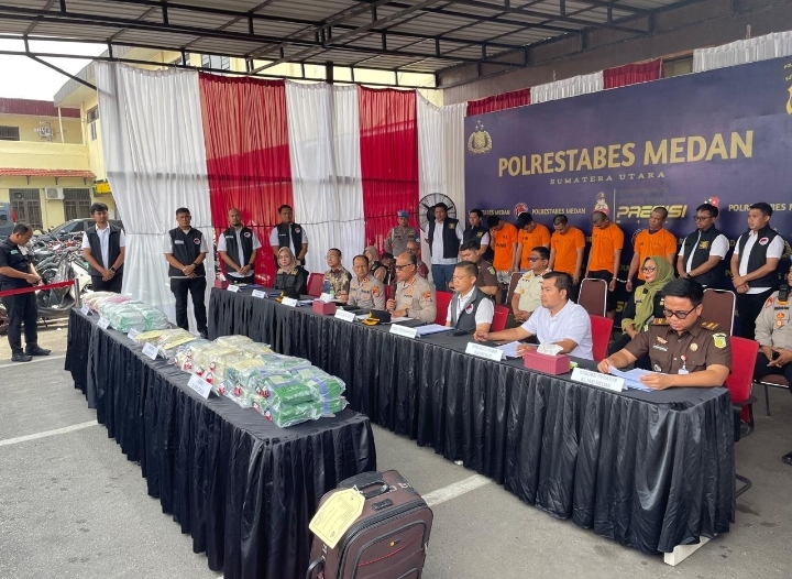 “Yang kita musnahkan adalah hasil dari 2 penindakan, yang pertama pada Senin (21/7/2025) dengan berat 1Kg dan yang kedua di hari yang sama disita sabu seberat 19kg dan 58.750 butir pil ekstasi,” kata Kapolrestabes Medan, Kombes Pol. Dr. Gidion Arif Setyawan dalam rilisnya.