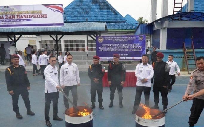 Sementara itu, usai digelarnya deklarasi Zero Halinar, Rutan Kelas I Medan juga turut melakukan pemusnahan barang bukti hasil dari razia di dalam blok perumahan selama 6 bulan terakhir.