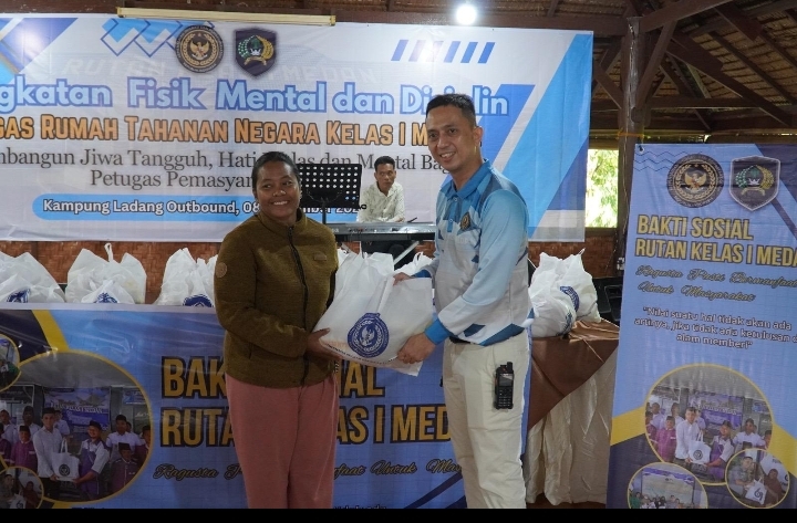 Medan, Relasipublik.com— Pegawai Rutan Kelas I Medan melaksanakan kegiatan Fisik Mental dan Disiplin (FMD) yang berlangsung di Kampung Ladang Outbond, Sabtu (8/11/2025). Kegiatan ini tidak hanya menjadi wadah penguatan motivasi, kekompakan, serta pengembangan karakter pegawai, tetapi juga dirangkaikan dengan aksi kepedulian sosial berupa pembagian 50 paket bantuan sosial kepada masyarakat sekitar Kampung Ladang, masyarakat Dusun II Desa Sembahe Baru.