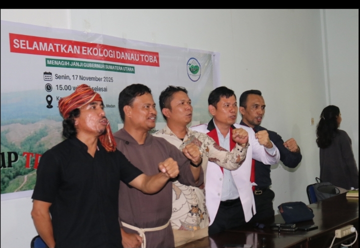 Medan, Relasipublik.com- Sekber Gerakan Oikumenis untuk keadilan Ekologi Sumut Terkait Seruan Penutupan PT.Toba Pulp Lestari (TPL), hari ini dilakukan Konferensi Pers tentang menagih janji Gubernur Sumatera Utara, Bobby Nasution .