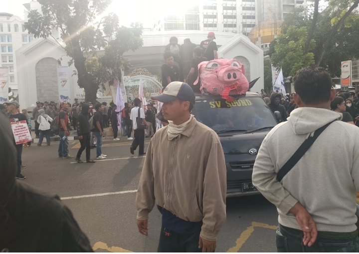 Massa Buruh  Berorasi di Kantor Gubernur Sumatera Utara, Kamis 1 Mei 2025.((Ronald Sihombing)