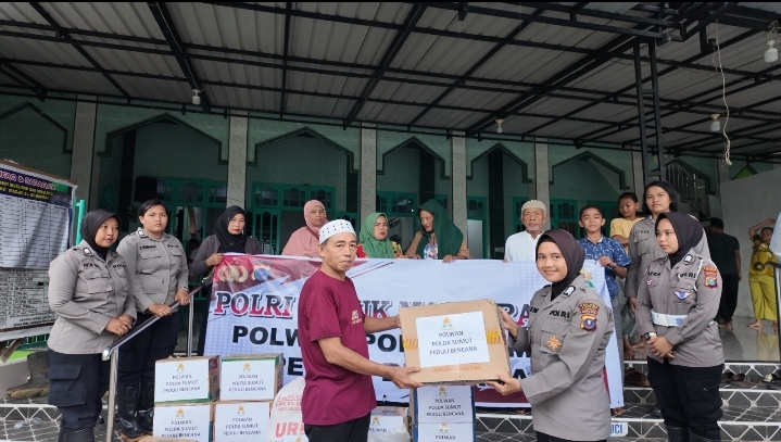 Sekitar pukul 15.30 WIB, para Polwan secara langsung menyerahkan paket bantuan kepada warga. Bagi masyarakat, bantuan ini bukan sekadar logistik, melainkan bentuk perhatian dan kehadiran negara di saat mereka membutuhkan.