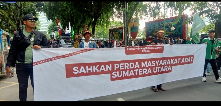 Diakhiri pertemuan massa dengan anggota DPRD Provinsi Sumatera Utara penerimaan Berita Acara Data Selebaran Peringatan Hari Tani Nasional 2025, yang menerima :