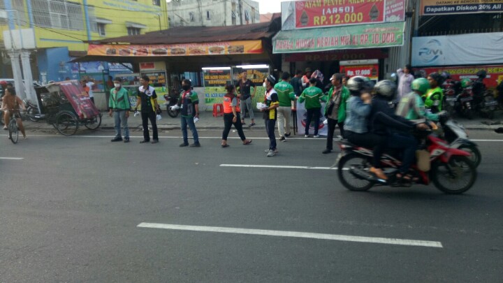 Ada sekitar 500 bingkisan yang dibagikan untuk masyarakat tersebut dan dibagikan kepada setiap pengendara dan pejalan kaki, dan ludes dalam tempo sekitar setengah jam.