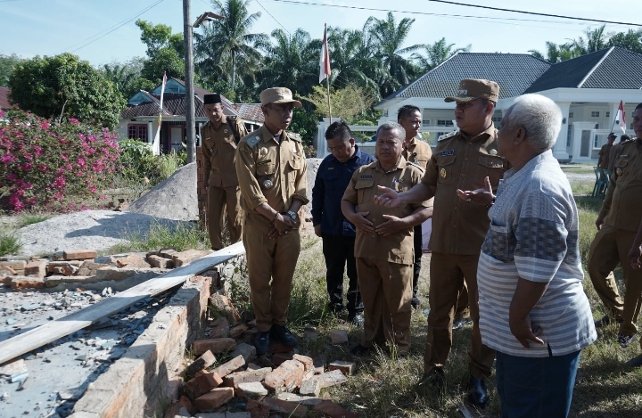 Keterangan foto : Wakil Bupati Asahan Rianto SH, MAP meninjau rumah warga yang disapu angin puting beliung di Pulo Bandring.(dok/ist)