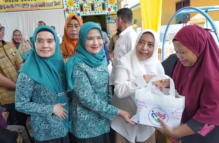 Dalam kunjungan ke Posyandu Mawar dan PAUD di Desa Tanjung Alam, Kecamatan Sei Dadap, serta Posyandu Melur dan PAUD di Desa Sipaku Area Kecamatan Simpang Empat Kabupaten Asahan itu Hj. Titiek Sugiharti Surya terlihat didampingi Ketua Tim Penggerak PKK Kabupaten Asahan Ny. Yusnila Indriati Taufik.